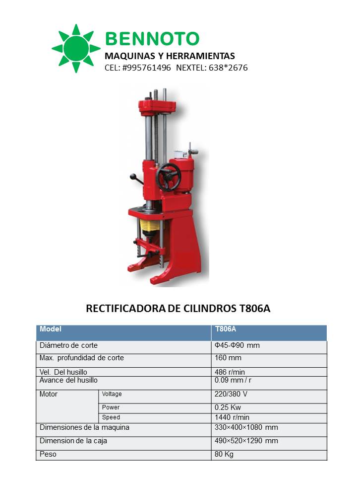 Rectificadora de cilindros de autos y motos 50-85 mm Marca Bennoto