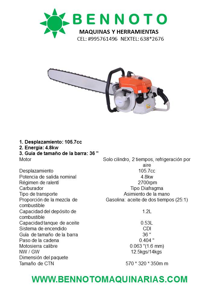 Venta de motosierras Bennoto Modelo 070 PRECIO: S/.950.00